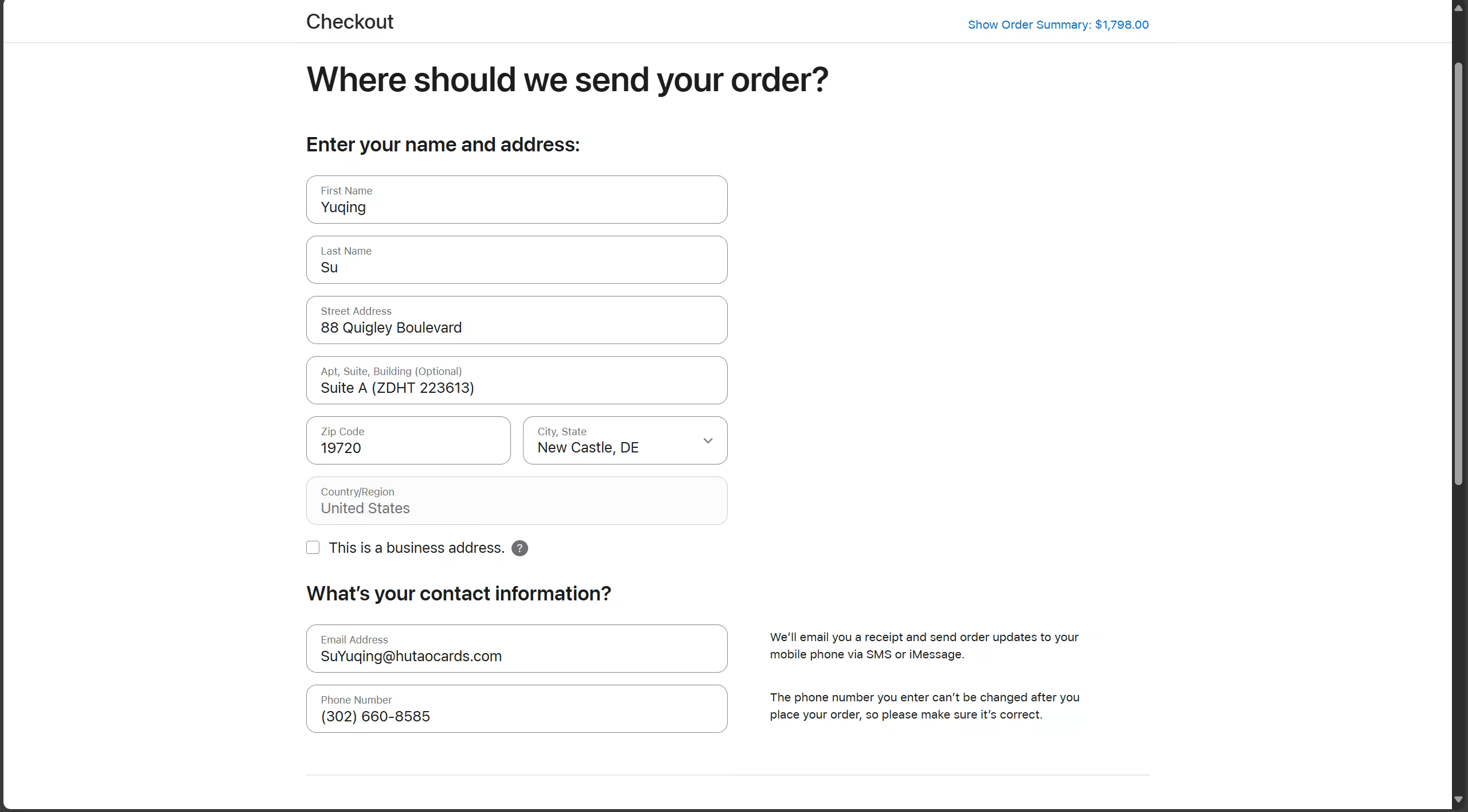 接下来我们需要填写收货地址,注意,这里只能写美国地址。因此我们需要一个转运公司来帮我们转运。