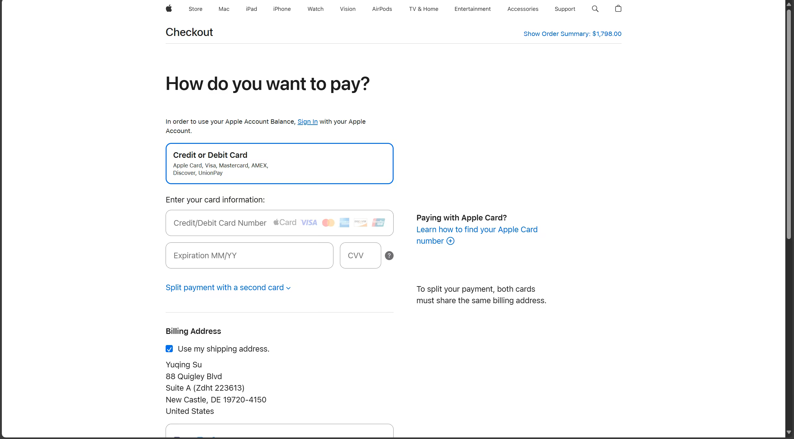 接下来,选择 Credit or Debit Card。输入你的 Hutaocards 开始结算。在购买完成后就可以去转运公司进行货物预报了。