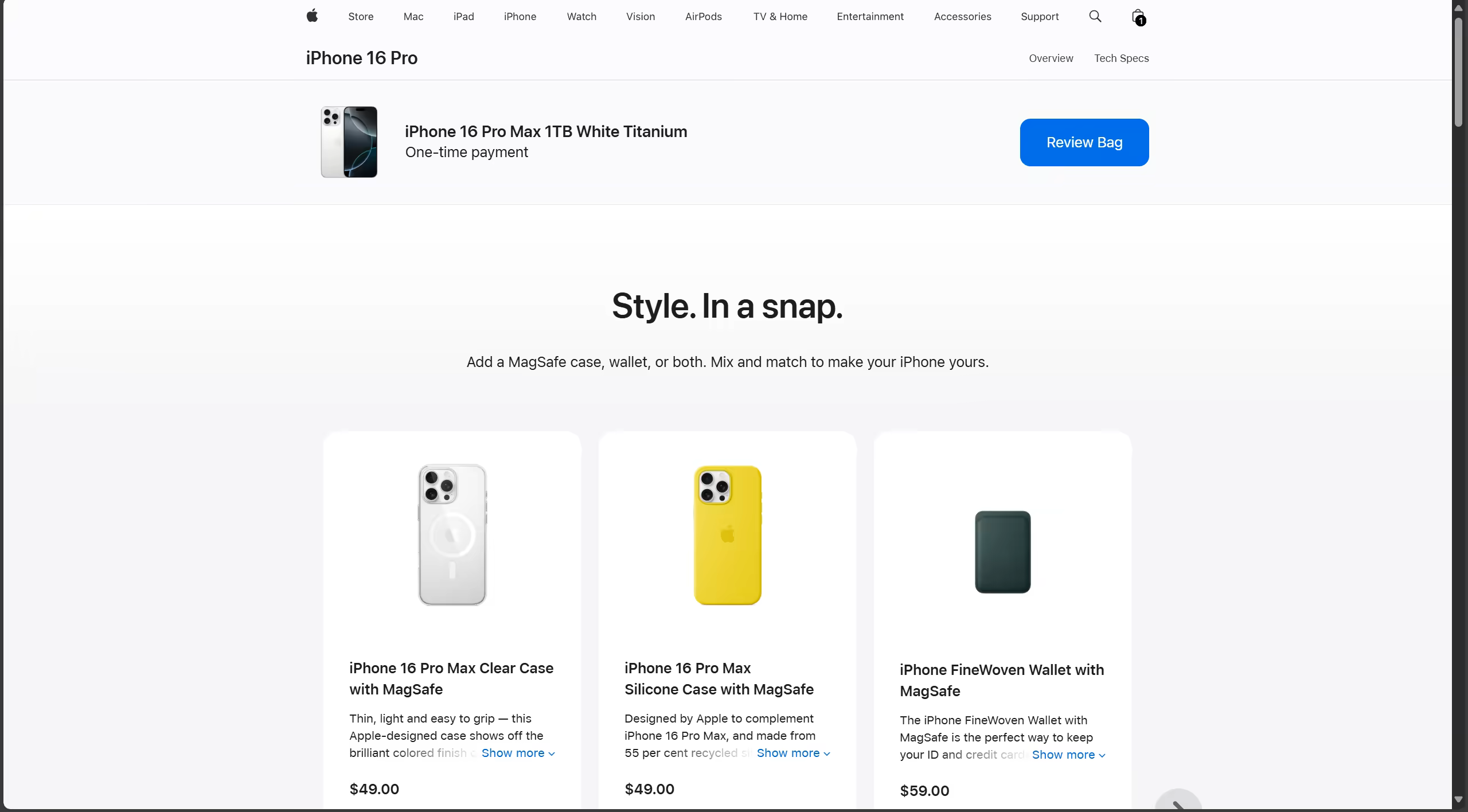 在添加到 Bag 后我们点击 Review Bag。