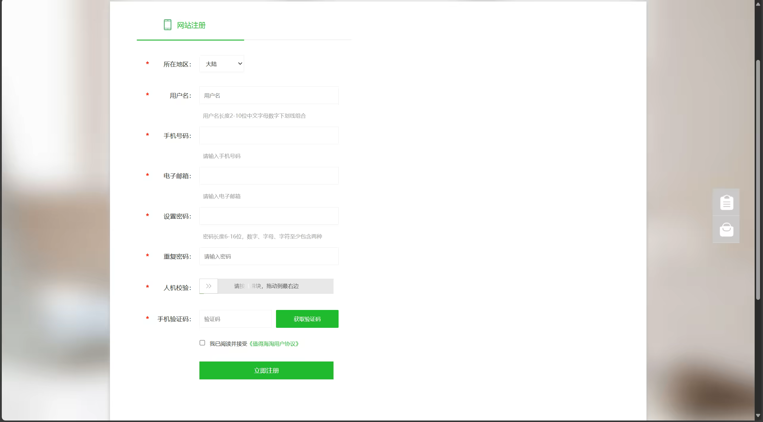 点击注册,注册一个值得海淘账号。