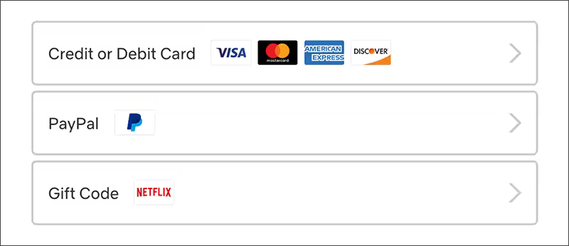 - 可以使用奈飞接受的付款方式(信用卡、PayPal、礼品卡等)购买奈飞会员。