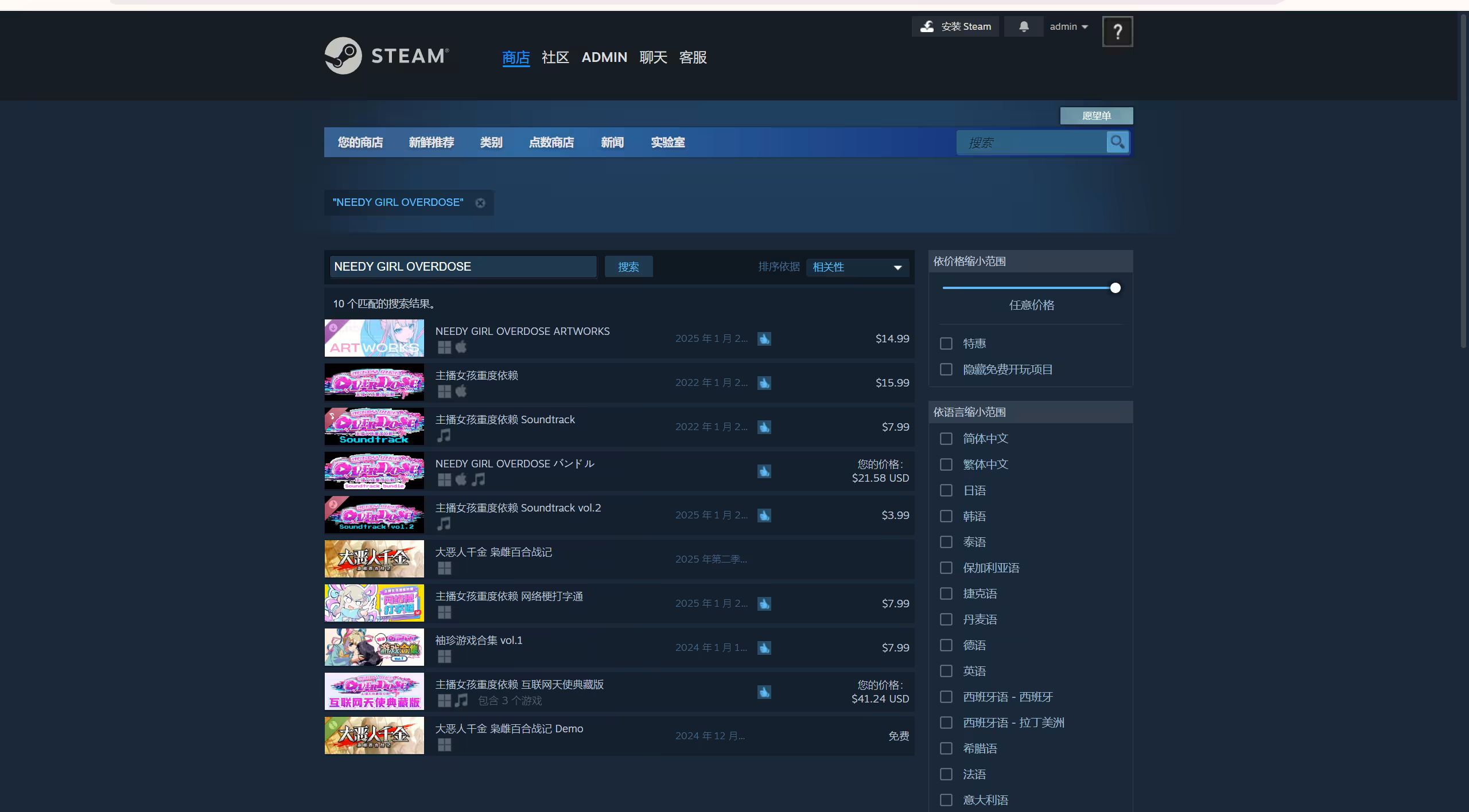 比如我们搜索,NEEDY GIRL OVERDOSE。
